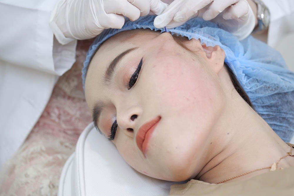 ผู้ช่วยแพทย์จะใช้น้ำยาฆ่าเชื้อเตรียมผิวหนังบริเวณใบหน้าให้ปราศจากเชื้อ เพื่อเตรียมพร้อมการร้อยไหม ในขณะที่รอยาชาออกฤทธิ์ เมื่อทำความสะอาดใบหน้าเรียบร้อย ห้ามคนไข้สัมผัสบริเวณใบหน้าเด็ดขาด เพราะจะทำให้เชื้อโรคมาปนเปื้อนได้