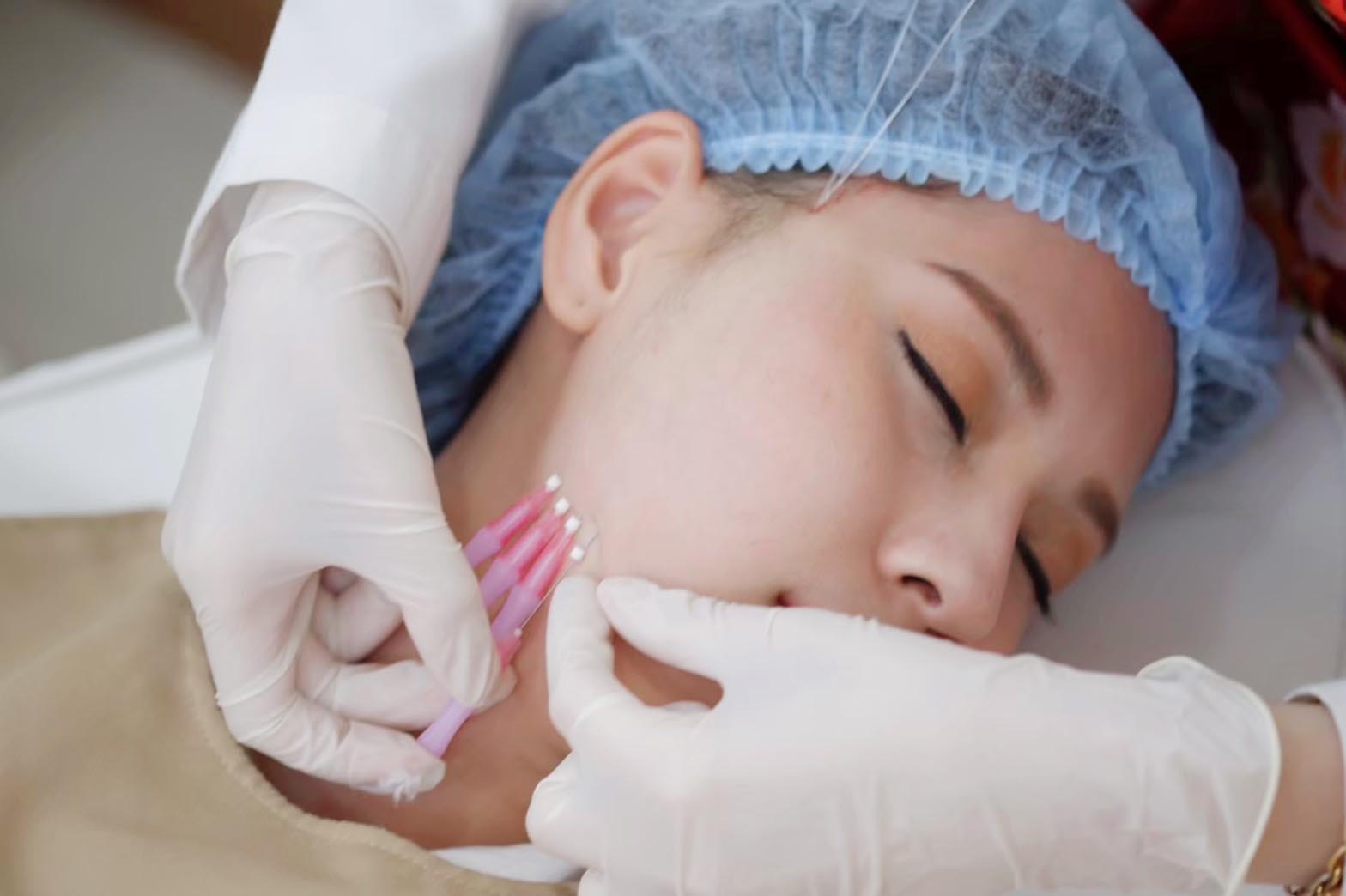 คุณหมอจะค่อยๆใส่ไหมทีละเส้นเข้าไปใต้ชั้นผิวหนัง – SMAS ขึ้นอยู่กับชนิดของไหม ตามแนวไหมที่ประเมินไว้ตามความเหมาะสมในรูปหน้าของแต่ละบุคคล คนไข้จะไม่รู้สึกเจ็บเนื่องจากฤทธิ์ของยาชา และจะมีความรู้สึกตึงๆเป็นส่วนใหญ่